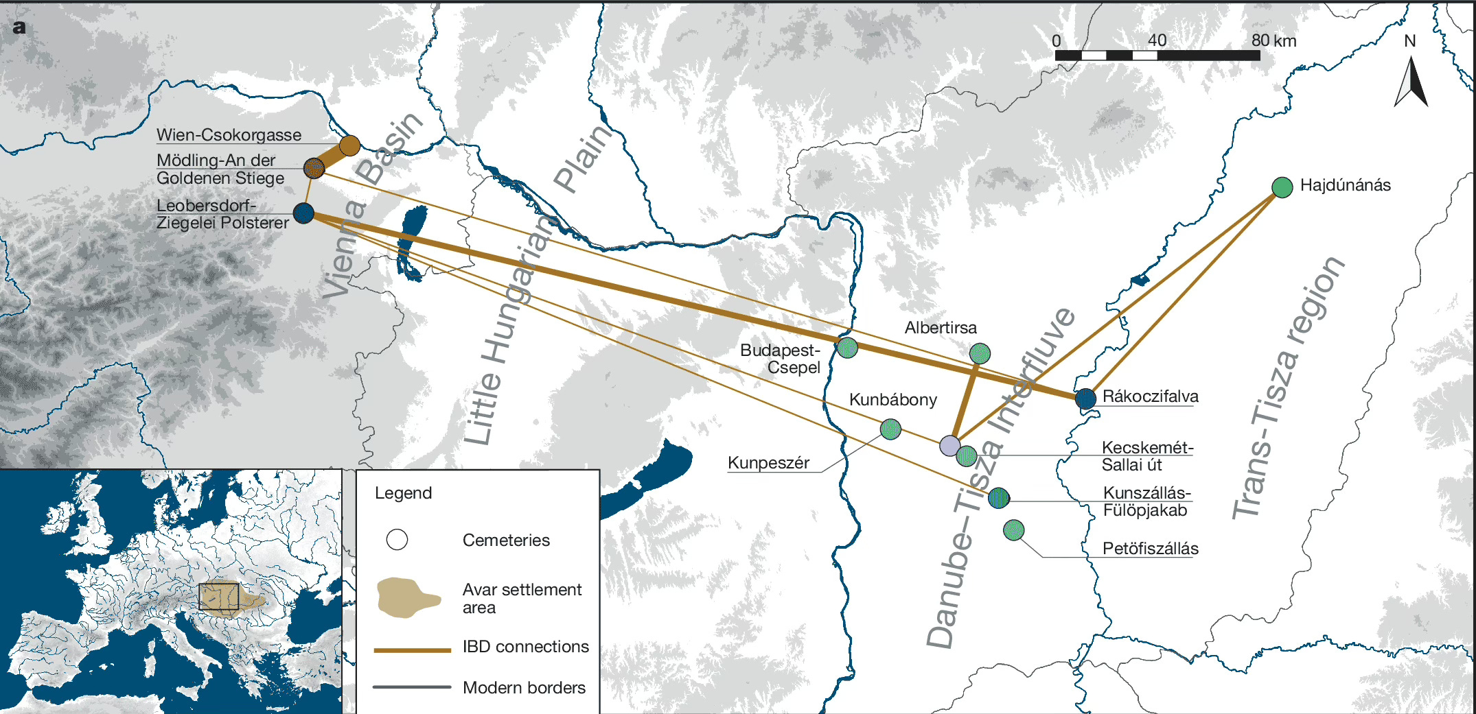 A well-designed study in January by Ke Wang and collaborators looked at two cemeteries from the late Avar period near Vienna, dating to the seventh century or eighth century CE. The Avars originated as steppe peoples before settling in central Europe north of East Roman provinces in the Balkans. Wang and coworkers sampled almost every skeleton from the Late Avar period from both cemeteries: Leobersdorf with 155 individuals and Mödling-An der Goldenen Stiege with 485 individuals. They added 83 from the nearby Csokorgasse cemetery, working to construct genealogies connecting individuals with each other.